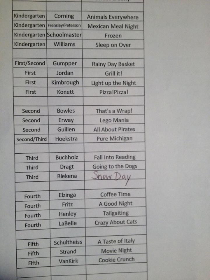 We are looking for a couple of volunteers to take over the auction committee. Please contact a PTO board member for more information!